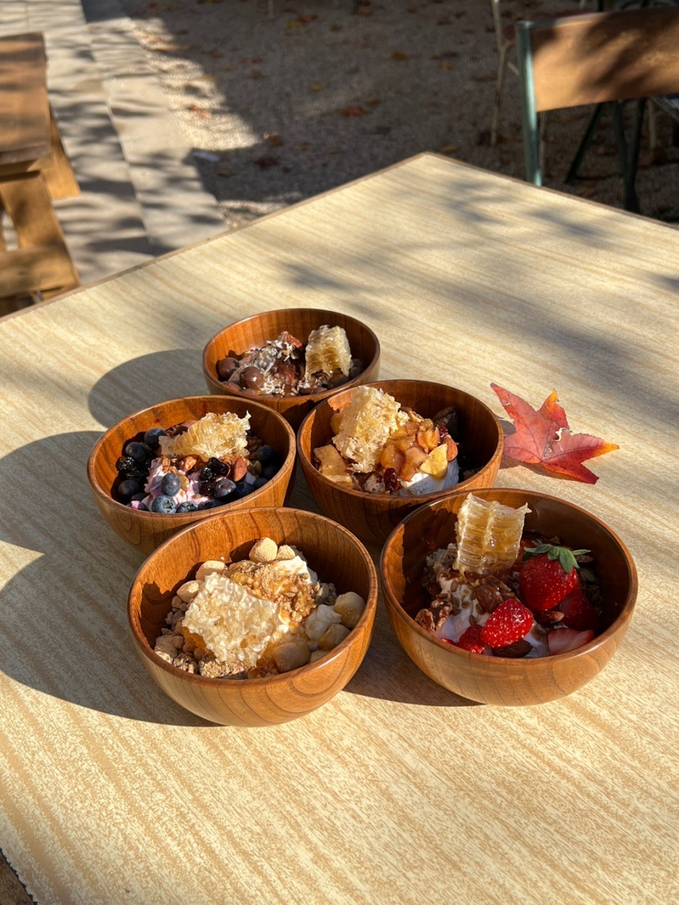 もうひとつの人気メニューはグリークヨーグルト。コムハニーやフルーツ、グラノーラなど、さまざまなトッピングが用意されており、約7種類あります。