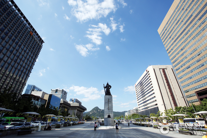 ハングルを創製した朝鮮王朝第4代王・世宗大王の像や、朝鮮王朝の名将・李舜臣将軍の像があることでも有名です。