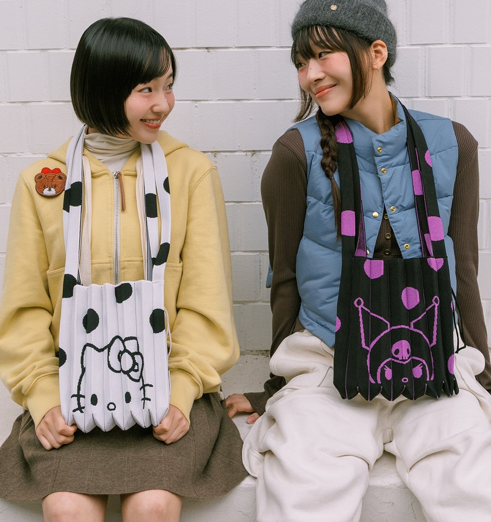 ハローキティやクロミなどのサンリオとのコラボが大人気で、プリーツバッグからリュック、パスポートケースに眼鏡拭きなど、バッグ以外の小物も多数。