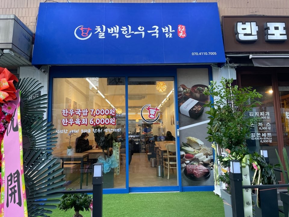駅近で、深夜でも安心して立ち寄れる『七百韓牛クッパ(칠백한우국밥)』。